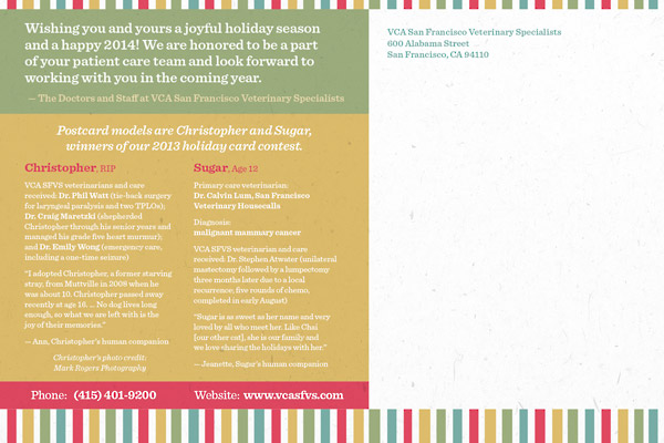 Karen from Big City has partnered with San Francisco Veterinary Specialists for over 12 years. In addition to designing and printing business forms, Big City helped develop our graphic standard and served as an advisor for furniture acquisition and workstation design. It is rare to find a company with the diligence and service commitment of Big City.